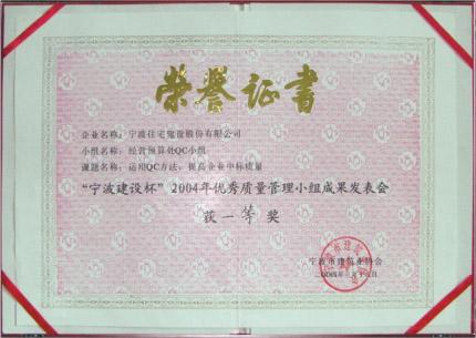 “寧波建設杯”2004年優秀質量管理小組成果發表會獲一等獎