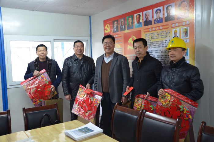 2015年1月27日上午,市住建委黨工委副書記屠愛康、組織人事處處長劉開龍、建筑企業管理處副處長季建明、市流動黨員管理服務中心書記王云亭一行,滿載著濃濃的新春問候和沉甸甸的慰問品和慰問金,來到集團公司氣象路3號地塊安置房項目部,看望項目部流動黨員。集團公司總經理祁圣偉、黨委副書記沈贊力陪同。