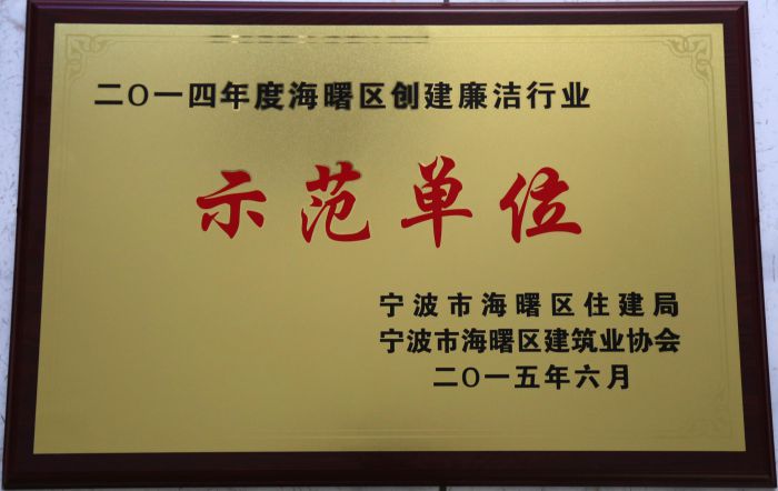 近年來我集團公司積極響應市住建委、市建管處、區住建局的“廉政文化進工地”及創建廉潔行業的要求,凝聚全員智慧和力量,深入常態化建設。今年3月,海曙區住建局開展全區范圍內的創建廉潔行業示范(先進)單位評選活動。集團公司踴躍參與申報。經過綜合考評,近日海曙區住建局表彰了5家示范單位和10家先進單位,集團公司作為5家示范單位之一接受表彰。