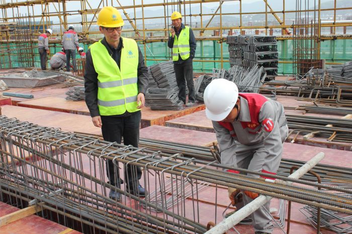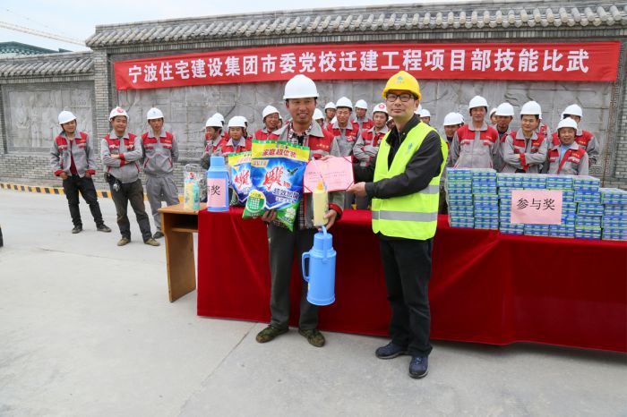 春風回暖大地,又是一年好光景,中共寧波市委黨校工地一片生機盎然,到處一片熱火朝天、干勁十足的場面。為了積極踐行“中國夢、勞動美”,傳承弘揚工匠精神,由集團公司工會牽頭,在黨校項目部組織開展了一場別開生面的南北兩區鋼筋技能大比武。
