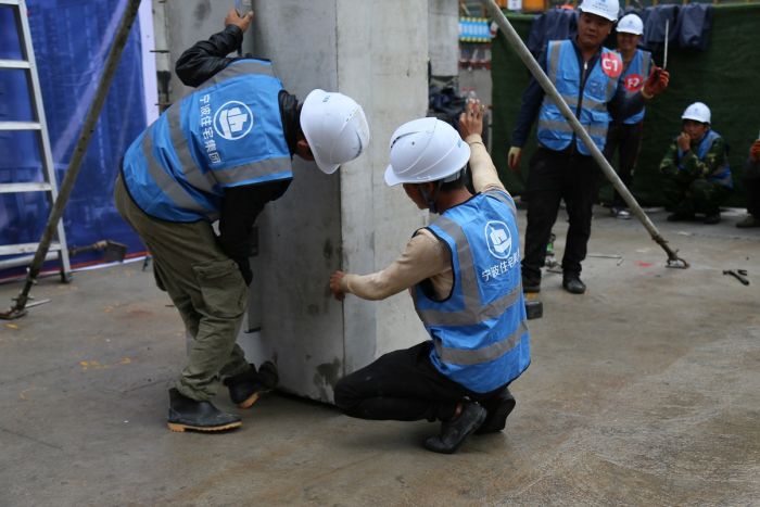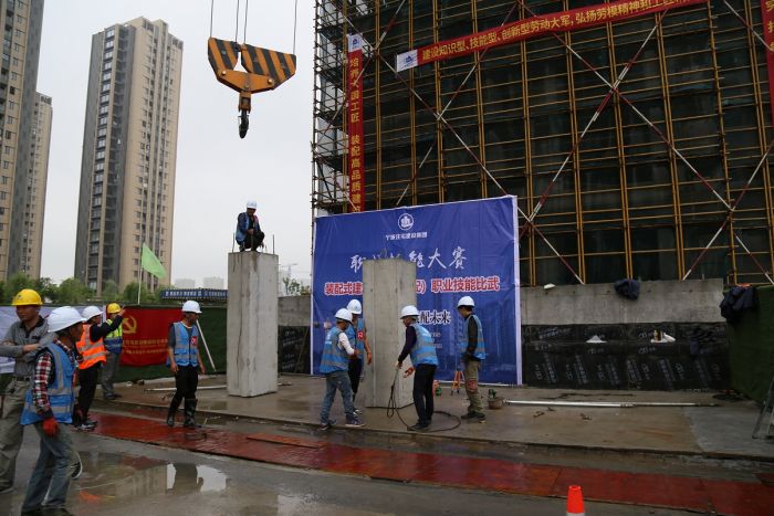 ——5月14日上午,雖然天上飄著小雨,集團公司技能比武如期舉行。這次共有6組12位技術人員參加了技能比武。9:30比武正式開始,統一著裝的參賽人員快速熟練地先測好基底標高,調整好平整度,再緩緩地、穩穩地把構件柱吊移至指定的位置,然后用一套四根支撐桿固定好,控制柱體的垂直度。每組的兩位參賽者配合默契,有條不紊,熟練地操作著,很快就把柱子固定安裝好了。比武間隙建筑裝飾樁基分公司黨支部的黨員志愿者們,向參賽者分發了礦泉水和甜點,做好后勤服務工作。一上午緊張激烈的比賽,經過評委們的綜合打分,評出一、二、三等獎,比武活動圓滿完成。